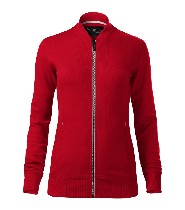 karcsúra szabott oldalrésszel, fémcipzár teljes hosszban, cipzár húzóka gravírozott logóval, 2:2 bordás kötésű “bomber” gallér 5 % elasztánnal, hátsó nyakrész belső oldala szalaggal, rávarrt zsebek rejtett cipzárral, 2:2 bordás kötésű szegély és mandzsetták 5 % elasztánnal, hurkolt belső oldal