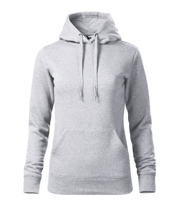 enyhén karcsúsított szabás oldalvarrással, zsinórral összehúzható, bélelt kapucni, hátsó nyakszegély belső oldala saját színű anyagból, rávarrt kenguru zseb, 2:2 bordás kötésű szegély és mandzsetták 5 % elasztánnal, bolyhos belső oldal