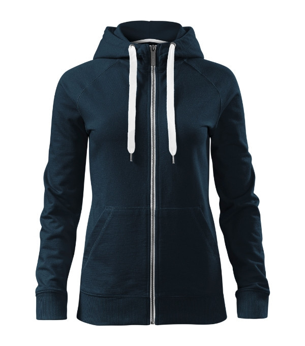 enyhén karcsúsított szabás oldalvarrással, fémcipzár teljes hosszban, cipzár húzóka gravírozott logóval, zsinórral összehúzható, bélelt kapucni, belső nyakrész szegéllyel, raglán ujjak díszítő varrással, rávarrt kenguru zsebek, 2:2 bordás kötésű szegély és mandzsetták 5 % elasztánnal, kontraszt elemek, hurkolt belső oldal