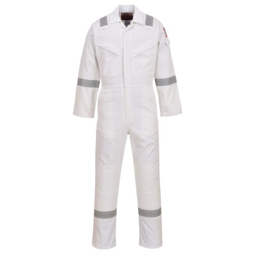 Ez az overall tökéletesen megfelel az offshore ipar követelményeinek. Rendkívül innovatív, lángálló anyagból készült, nagy láthatóságú fényvisszaverő szalaggal, amely a fokozott láthatóság érdekében dupla varrással van ellátva. Az összes előírt EN-szabványnak megfelel, jellemzői közé tartoznak a háromszorosan varrott varratok, a vállakon, karokon és lábakon elhelyezett jól láthatósági csíkok, a rejtett, kétirányú, sárgaréz elülső cipzár és a két elülső ferde mellzseb rejtett sárgaréz cipzárral.